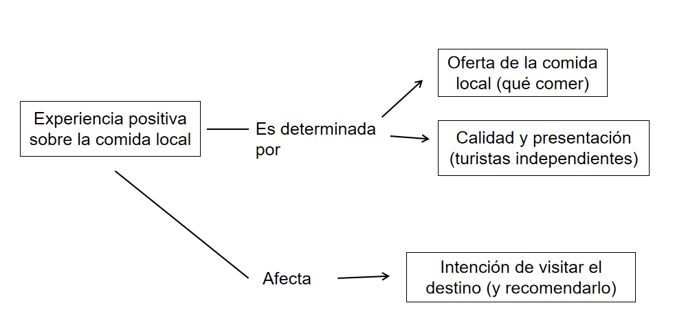 A modo de resumen, se pueden distinguir varios subsegmentos entre los amantes de la comida, según la actitud del individuo hacia la novedad de la comida local. Para aquellos que están ansiosos por probar la comida local, “qué comer” es generalmente más importante que “cómo comer”, aunque los viajeros individuales también aprecian la calidad y la presentación. Además, una experiencia gastronómica favorable en un destino turístico fomenta las intenciones de volver a visitarlo, así como recomendarlo a otros a través del boca a boca.