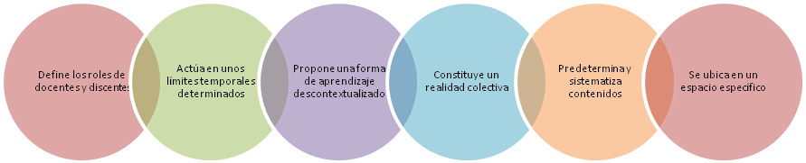 Retomando a Dubet (2000: 32) una institución es un “proceso social que transforma valores y principios en acción y en subjetividad por el sesgo de un trabajo profesional específico y organizado”. Esta definición se acompaña con aquello que vuelve particular a la institución educativa, siguiendo a Trilla (1985: 20): “lo que distingue a la escuela es su particular forma de organizar series de actividades en aras de cumplir la función educativa o alcanzar esos fines educativos”. Para ello este autor propone las siguientes notas como distintivas de las instituciones educativas: