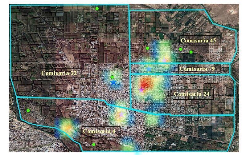 Dado que varios de estos interrogantes han sido escasamente abordados en la región, los datos disponibles eran por demás limitados. Para el relevamiento, en Cipolletti, primero se identificaron las zonas de conflicto determinadas por un mapa de calor producto de varias entrevistas estructuradas a funcionarios de asesoría municipal de seguridad y denuncias sobre violencia institucional en la Fiscalía Especial Nº 3.[3] En función de dicho mapa se efectuaron entrevistas en cinco comisarías (4, 24, 32, 45 y 79) y en seis barrios: Obrero, 2 de agosto, Ferri, Labraña, La Paz y 2 de Febrero.