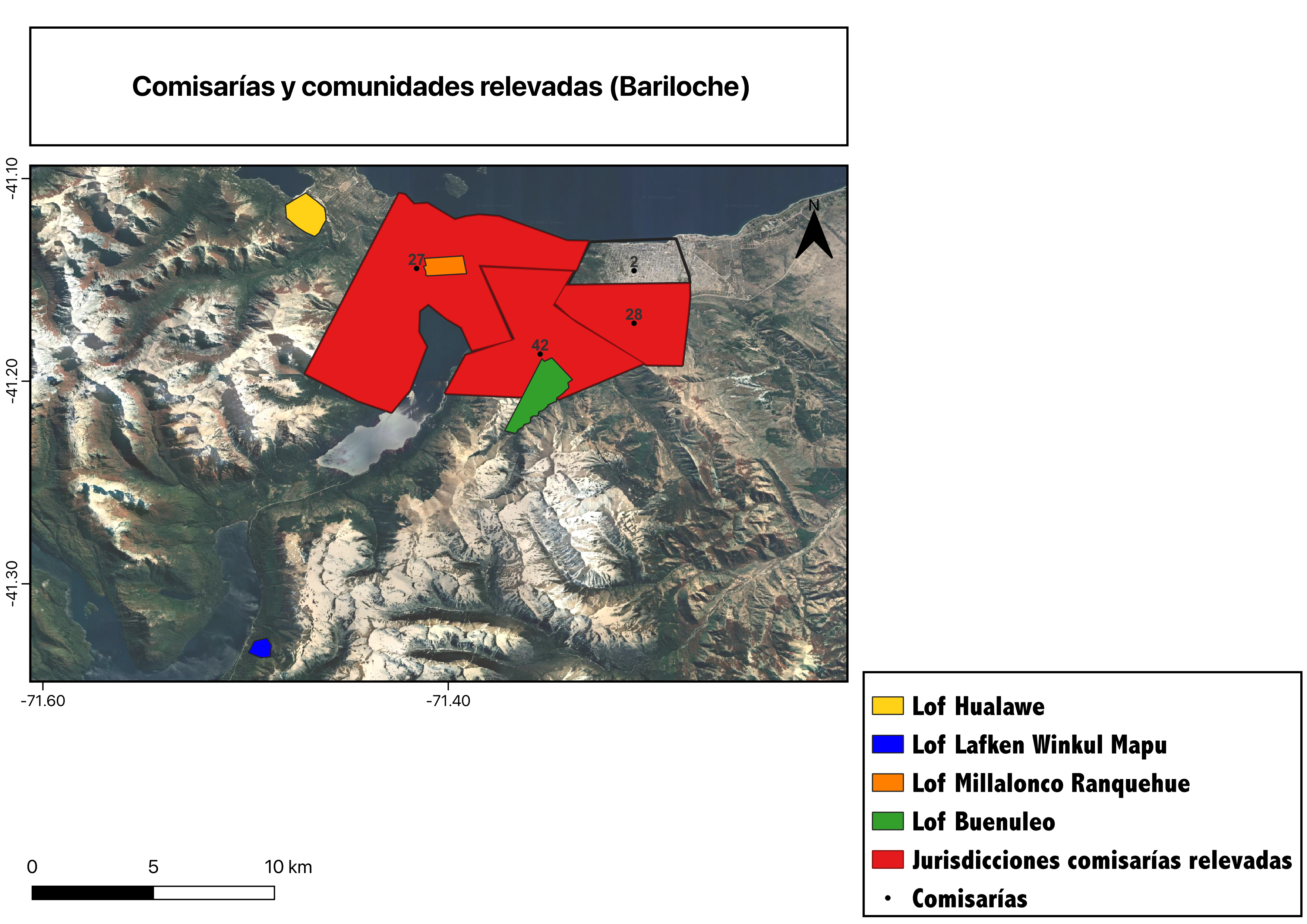 Mapa 2. Comisarías y comunidades relevadas en San Carlos de Bariloche