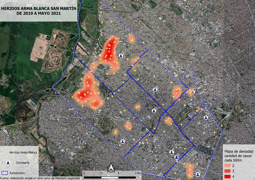 Mapa 3. Heridos por arma blanca según ubicación geográfica.