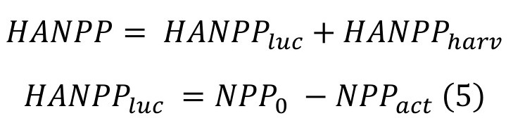 Calculamos el HANPP (ecuación 5) de acuerdo con el enfoque propuesto por Haberl et al. (2014):[57]